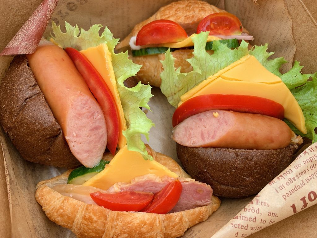 餐點內容有馬德里香腸小漢堡+火腿小可頌+小農鮮奶風味奶酪+法式經典瑪德蓮
