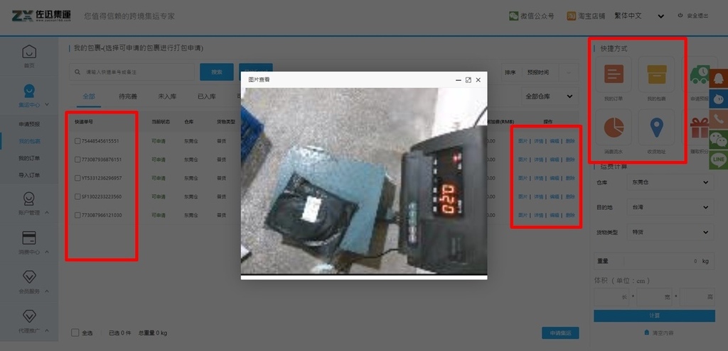 這裡就可以看到包裹的照片還有秤出來的重量 (有這個服務真的很優秀!!)