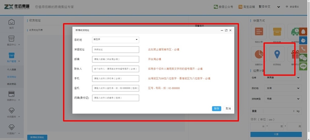 購物車的商品都和客服確認之後就可以索取地址,請淘寶賣家把商品寄到集運倉庫啦![]()