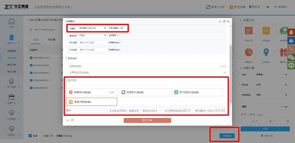 都好了之後就要來付款運費啦,佐運集運支付運費的方式也很多元化