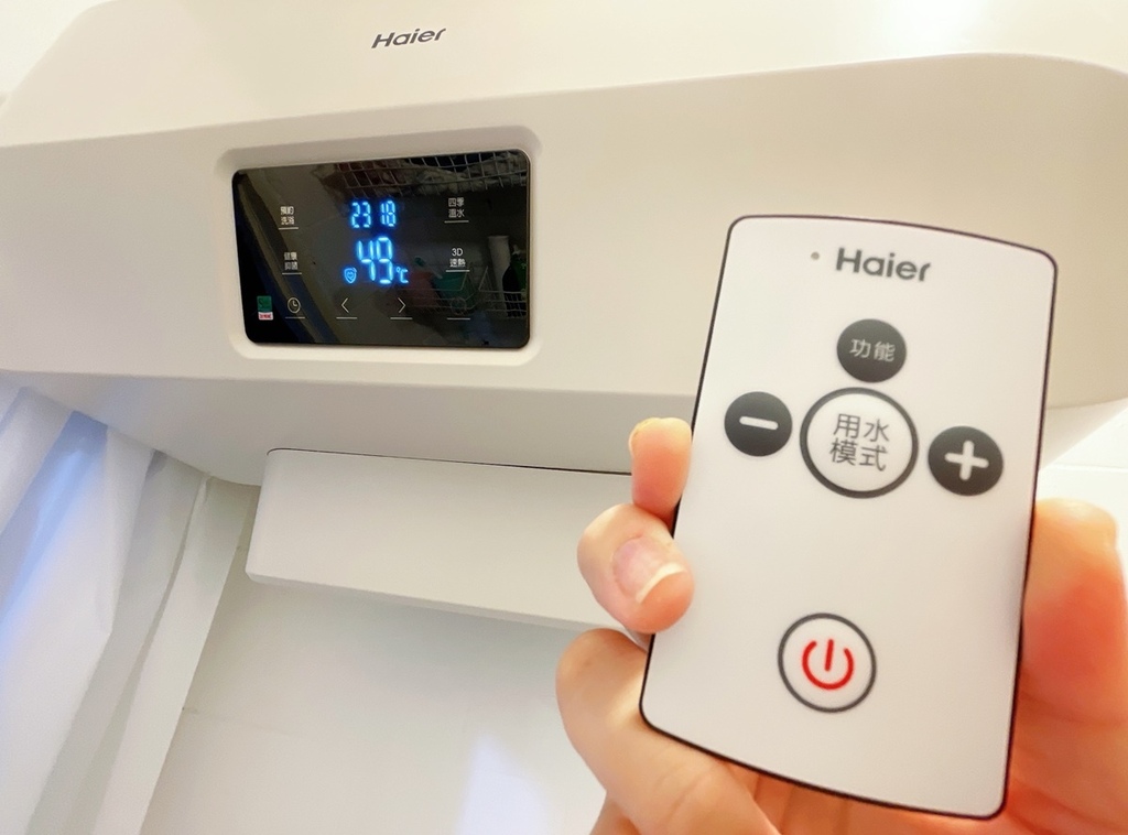 海爾這台HR-ES20HJ5D外型超美,白色的長方形設計可以直接安裝在浴室上方完全不佔空間![]()