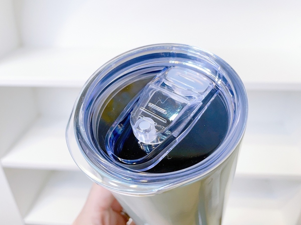 杯蓋的部分用了推片設計,輕輕推開就能飲用,上蓋是全密封的,放進包包也不用怕灑出來