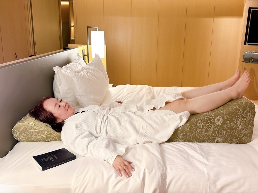 只要將輕鬆枕墊在膝蓋下方,讓腰部自然貼合床面,整個人能夠瞬間放鬆啦 ![]()