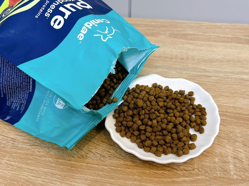 因為胖妹已經是老貓了,牙口不太好,所以最近換了主打小顆粒貓飼料的CANIDAE良善的純淨無穀系列