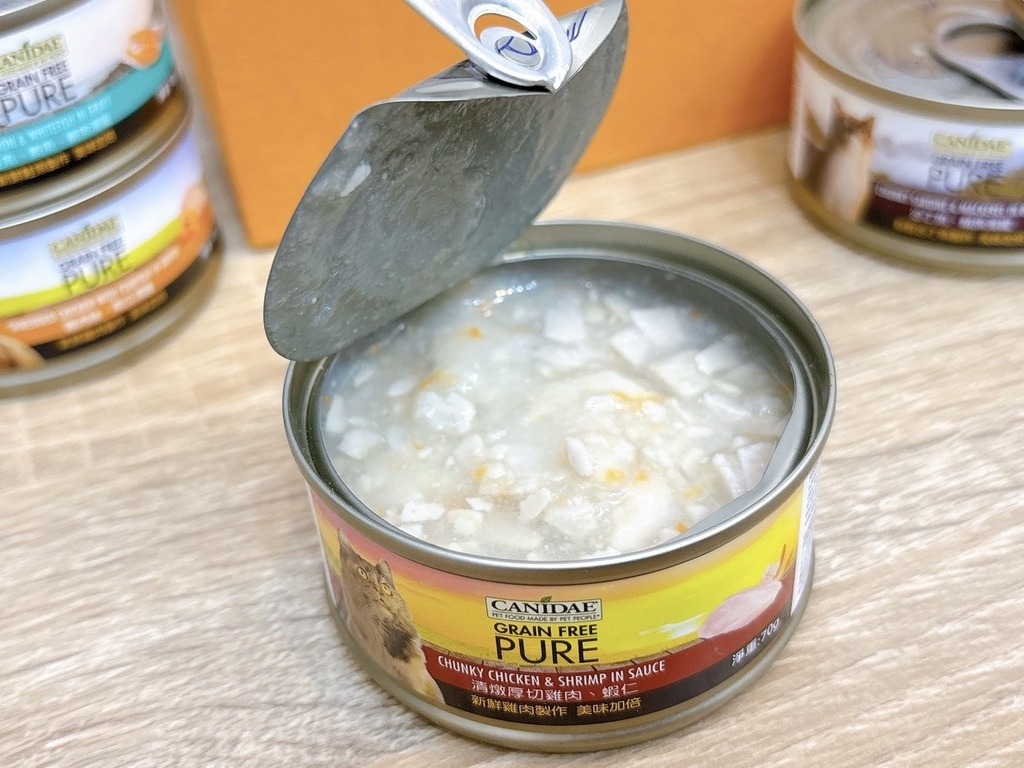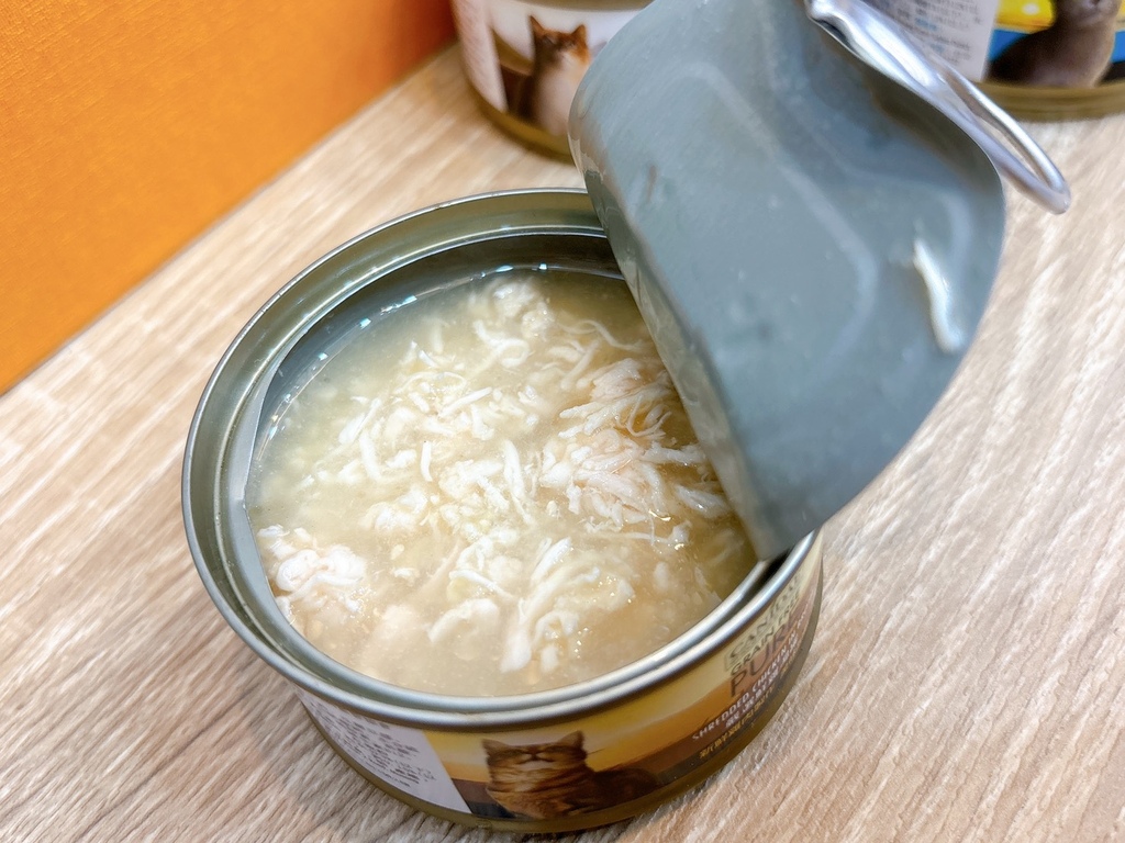 最讓我印象深刻的是罐頭的用料真的看得到肉絲,能清楚分辨出雞胸肉的纖維,像是人吃的食物一樣細膩